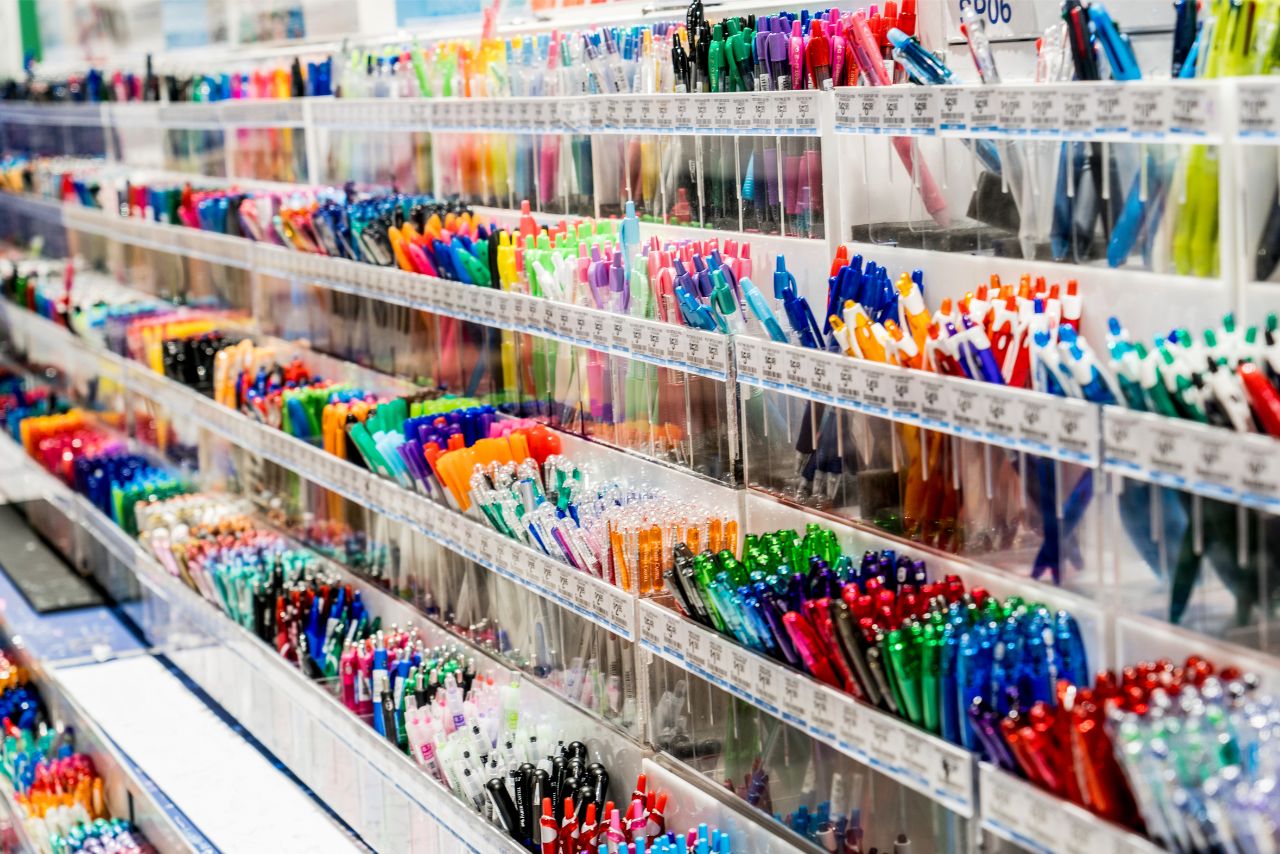 Covers daily use items like notebooks, pens, markers, paper products, as well as other household essentials like batteries, light bulbs, plastic storage containers, and kitchen accessories — essential for homes, schools, and offices.